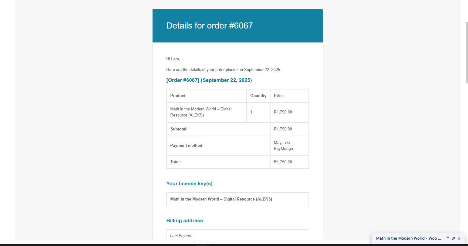 2. Browse the shop, select Math in the Modern World Digital Resource Product, and add it to your cart. Click the view your cart button and it will lead you to the cart page.